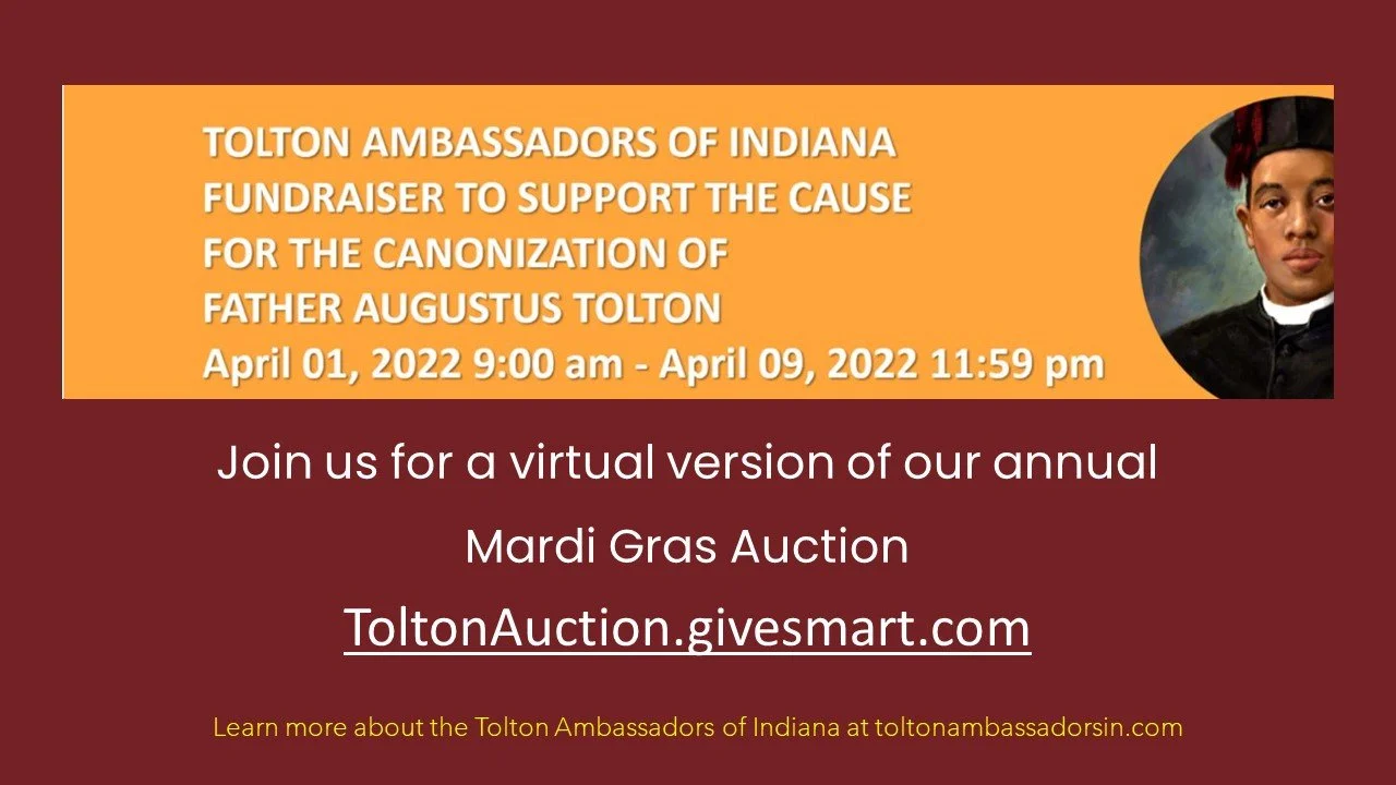 Join us for a virtual version of our annual Mardi Gras Auction. All proceeds support our promotion of the cause of sainthood for Venerable Fr. Augustus Tolton.